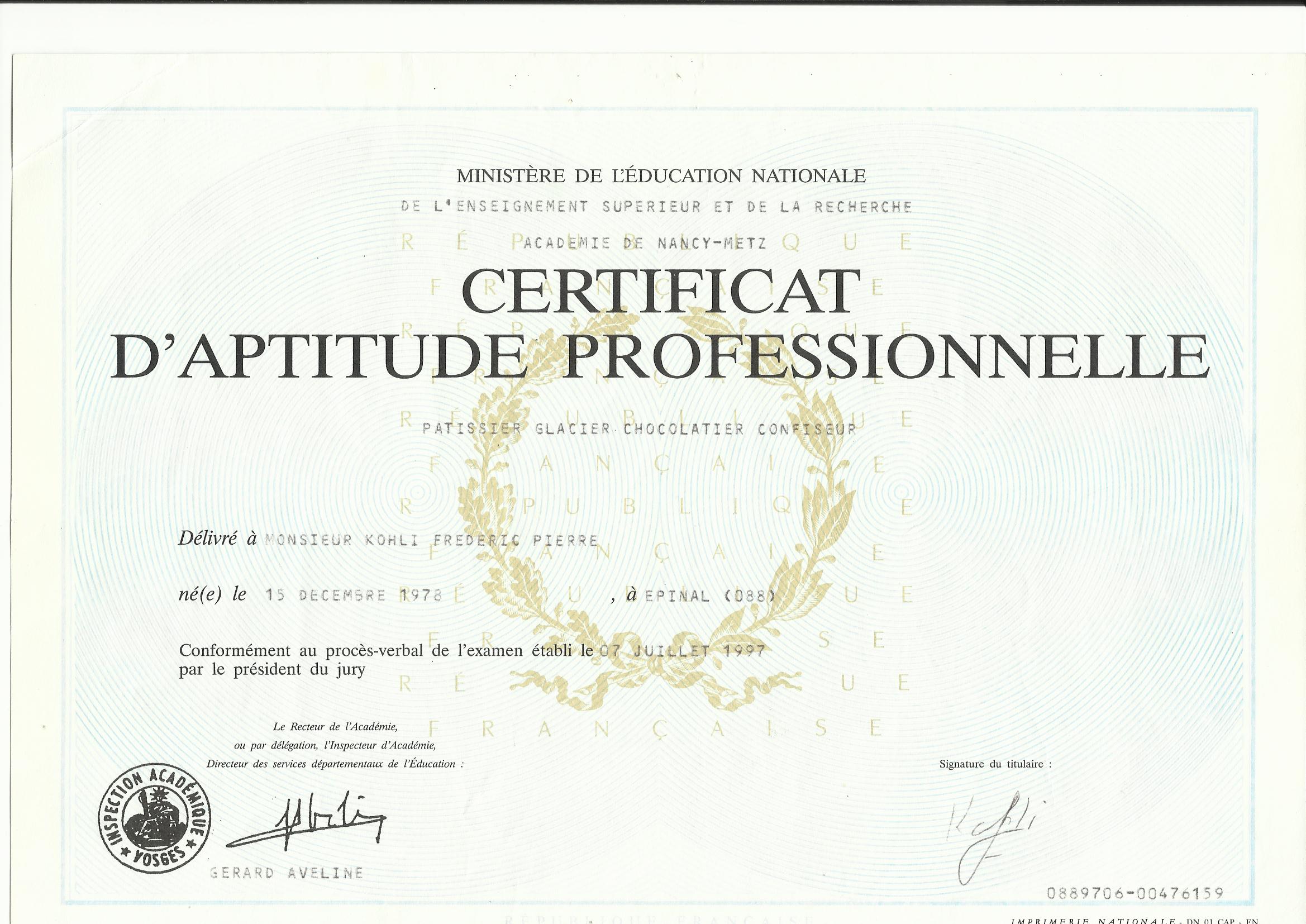 apprentissage du 01 octobre 1995 au 30 septembre 1997;
